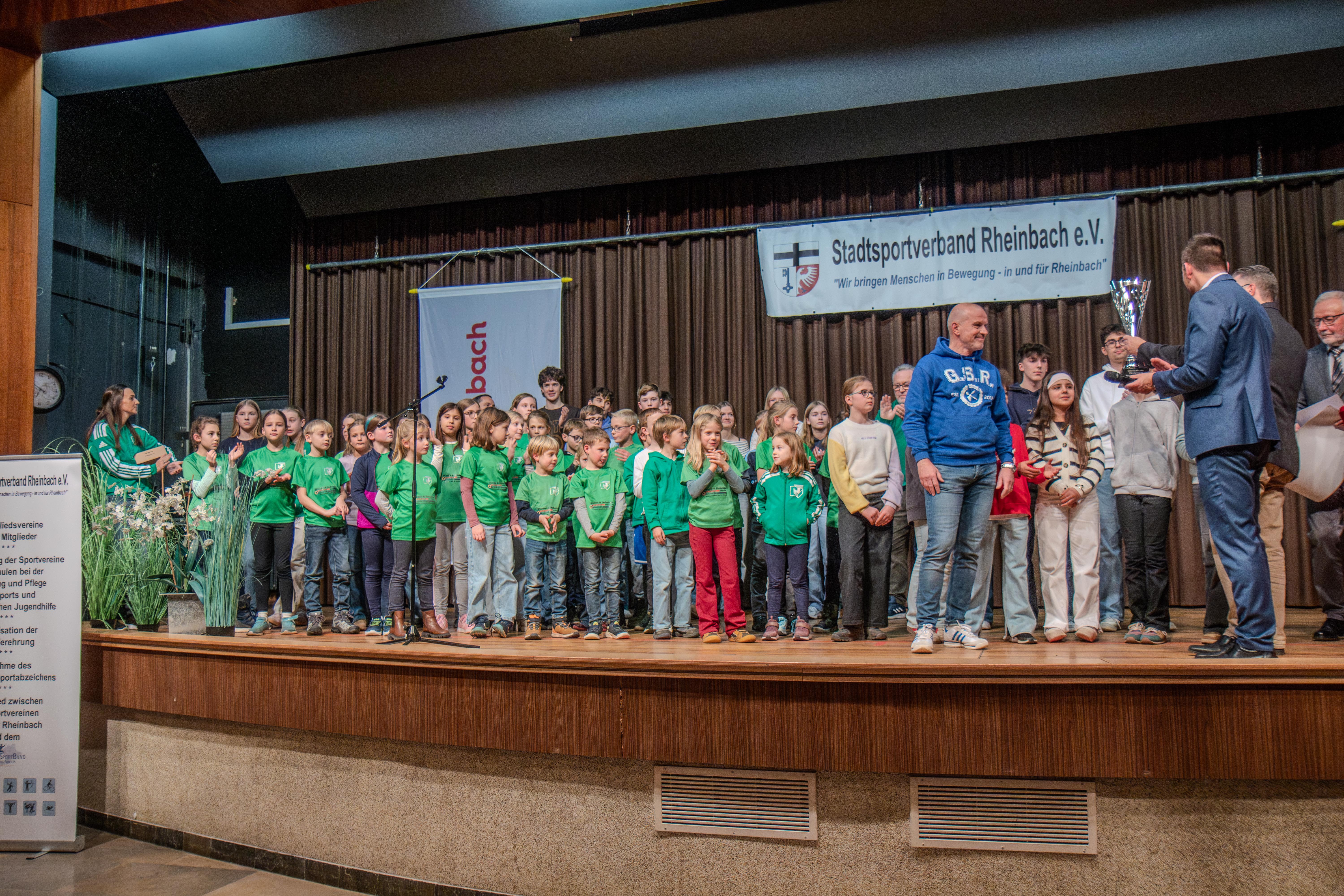 Großer Jubel bei der KGS Wormersdorf. Lehrerin Liliane Bosic und Schüler konnten bei der Sportlerehrung 2019 zum 3. Mal den Wanderpokal des SSV als die Schule mit den prozentual meisten Sportabzeichen in Empfang nehmen.